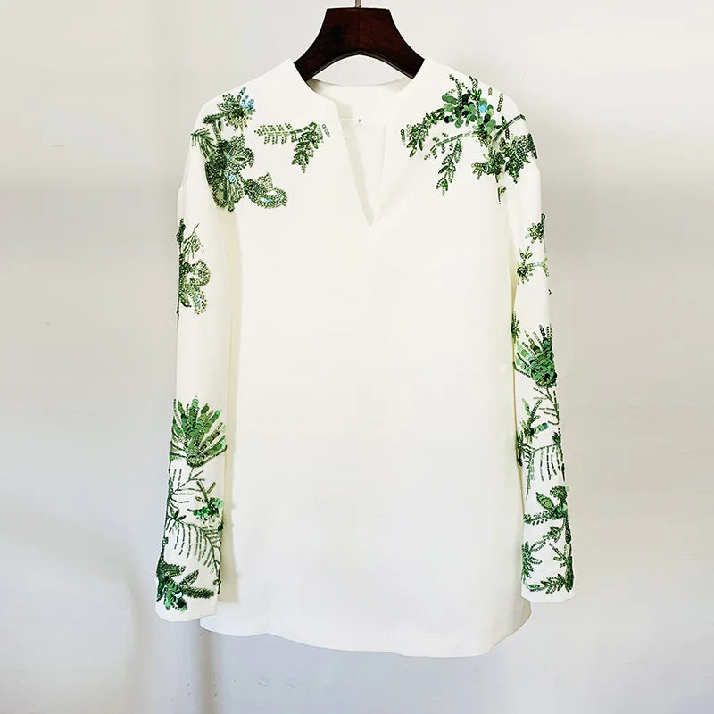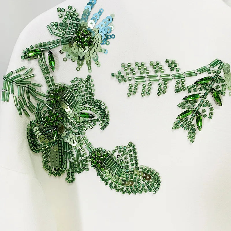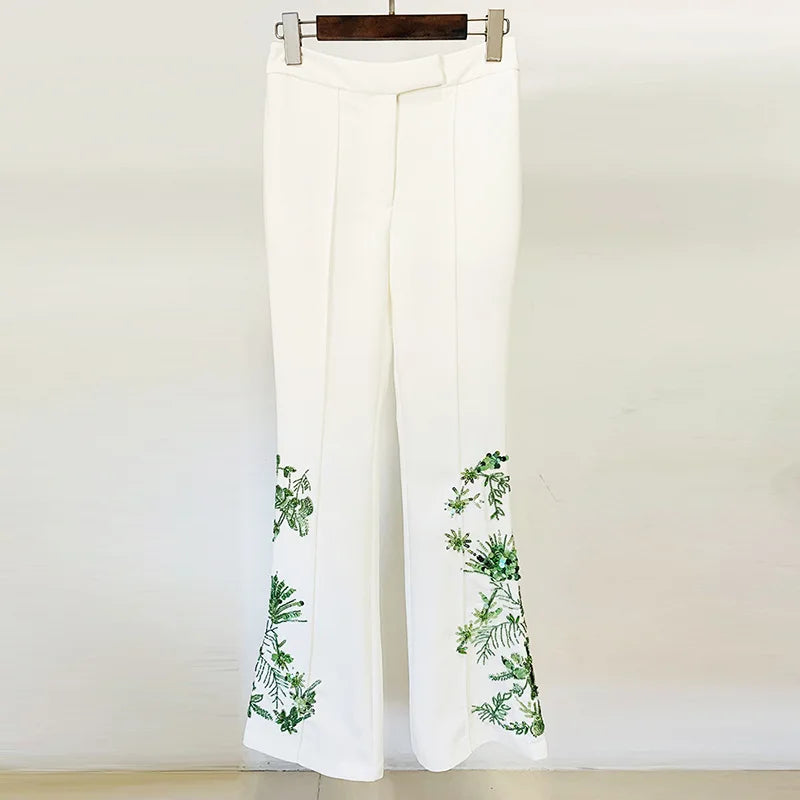 JAMERARY Runway Beads Diamonds Sequins Two Piece Suits Coats Women Set Long Sleeve White Blazers Wide Leg Long Flared Pants