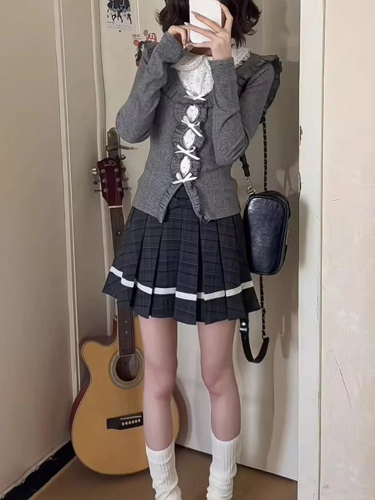Japanese Sweet Preppy Style 2 Piece Sets Women Fake Two Piece Tops + Pleated Skirt New Fashion JK Slim Retro Outfits Spring 2026