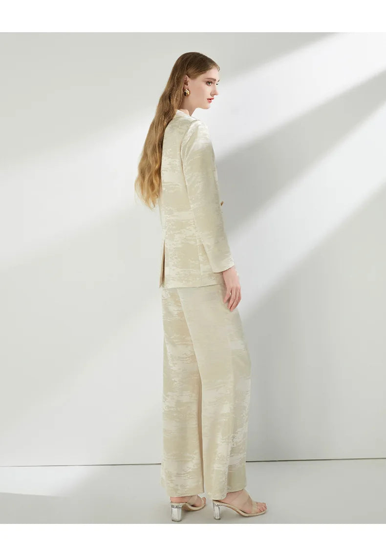 Luxury 2025 Spring Autumn Suits Coats Two Piece Set Women's Blazers Wide Legs Pants Sets Formal Occasions Matching Sets