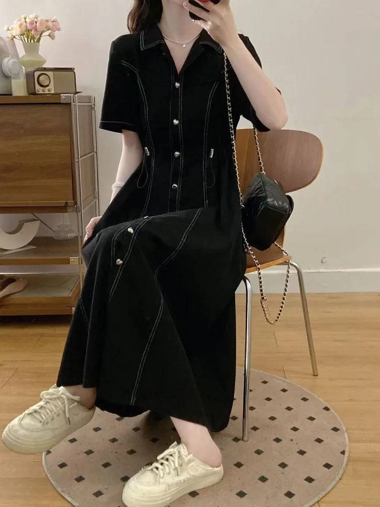 Black long dress premium denim cotton