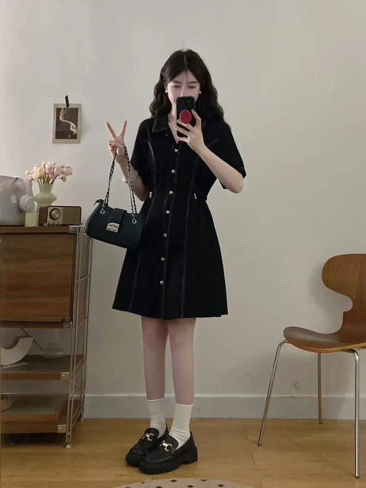 Black mini dress - premium denim cotton